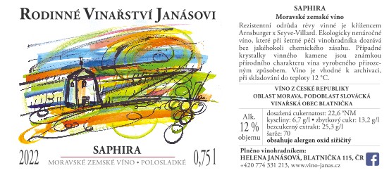 Saphira 2022, bílé víno, 0,75 l