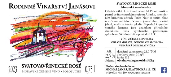 Vyrobeno z hroznů viniční trati Novosady vinařské obce. Blatnička. Skladujte při teplotě 12°C.